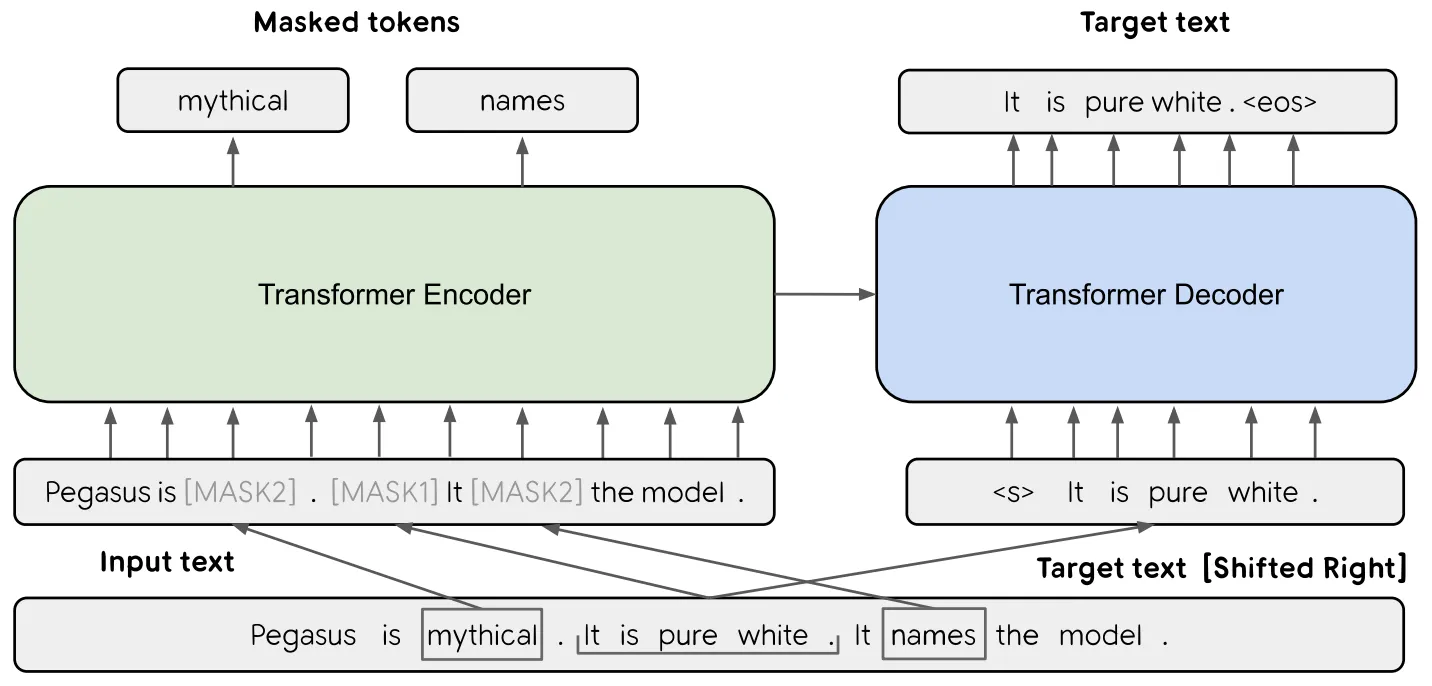 PEGASUS는 Abstractive Summarization 수행을 위한 Transformer Enc-Dec 기반 LM으로 Gap Sentences Generation (GSG) 및 MLM Objective로 Pre-Training 된다.