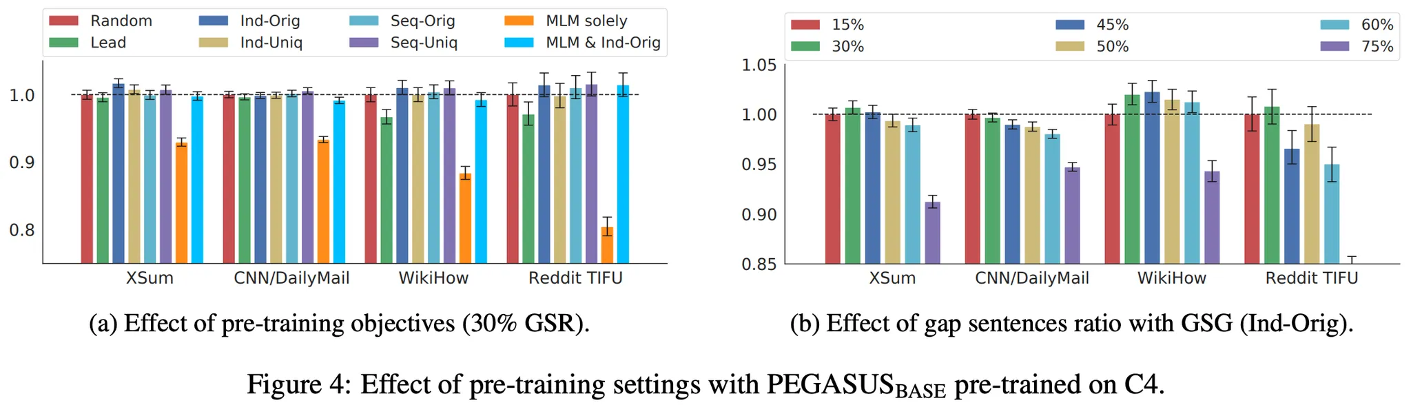 Masking 하는 문장의 수 (비율)를 Gap Sentences Ratio (GSR)라고 하며, 일종의 HyperParameter로 조절 가능한 수치이다.