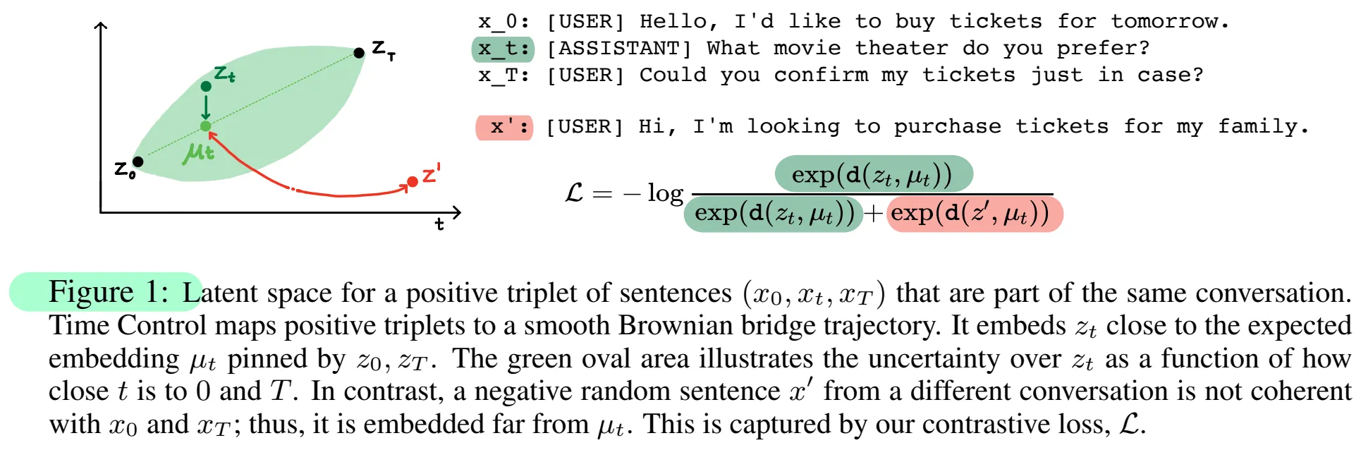 위 그림과 같이 대화의 시작/끝 문장 (발화)의 임베딩 값을 z_0/z_T라고 하면, 대화의 흐름은 z_T - z_0로 표현할 수 있으며, 중간 발화들은 모두 z_0과 z_T를 잇는 선 상에 존재해야 한다 (일종의 Interpolation).