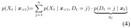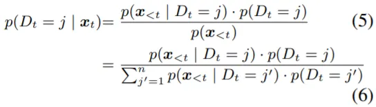 논문에서는 Inference 과정을 식(4)와 같이 표현하는데, P(D_t=j)는 Timestep t에서의 Token이 Domain j에 속할 확률을 의미한다. 식(4)에서 Likelihood는 Expert들로부터 얻을 수 있고, Prior를 계산해야 하는 문제가 남는다. 이는 앞서 언급했던 Routing Function(g_n)을 정의하는 것과 연관이 있다. 논문에서는 Prior를 정의 (Posterior로 변환) 하는 방법으로 총 3가지를 소개한다.