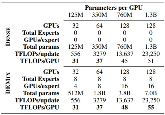 e.g.) 일반적으로 PyTorch DDP(Multi-GPU)를 사용할 때 동일한 모델을 복사하여 각 GPU에 할당하고, Synchronization을 수행한다. Demix Training에서는 (전체 GPU 수: 32, Expert 수: 8 일 때) Expert를 n(GPU)/n(Expert)=4 만큼 복사하여 이들을 Synchornize한다(⇒Throughput 증가). 이를 위해 Batch도 하나의 Domain으로 구성하며, Larger Batch Size를 적용한다고 한다.