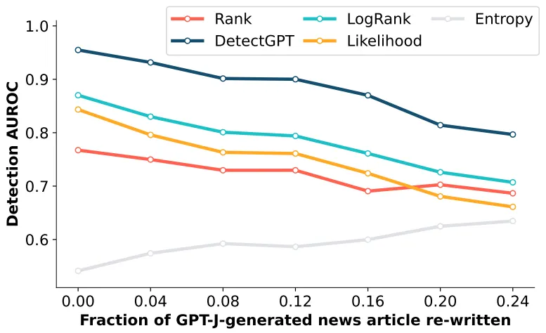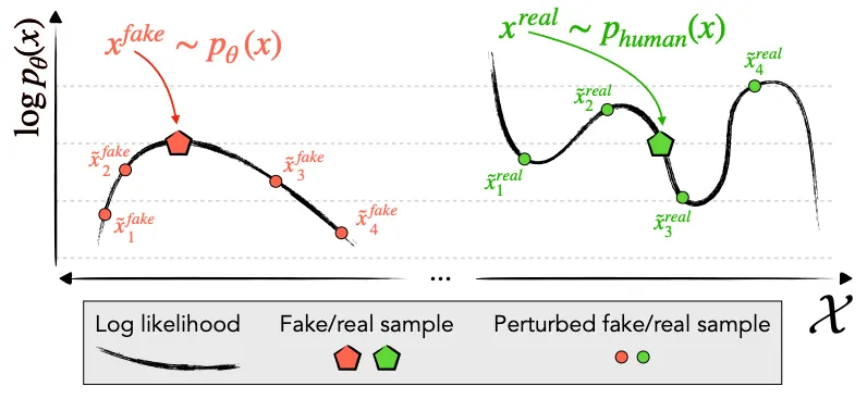 Key Idea: AI가 생성한 문장은 높은 Log Probability 값을 가질 것이므로, 해당 문장의 일부분을 수정하여 얻은 문장은 상대적으로 작은 Log Probability 값을 가질 것이다