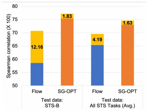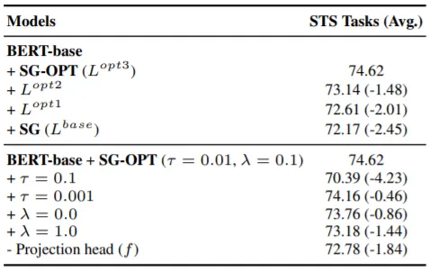 ์คํ ๊ฒฐ๊ณผ๋ ์ ํ์ ๊ฐ์๋ฐ, SBERT์์์ ์ผ๋ถ Case๋ฅผ ์ ์ธํ๋ฉด, ์ ์ ๊ธฐ๋ฒ์ด Baseline Methods์ ๋นํด ์ข์ ์ฑ๋ฅ์ ๋ณด์์ ์ ์ ์๋ค. ํนํ, SG-OPT๊ฐ SG์ ์ฑ๋ฅ์ ๋ฅ๊ฐํจ์ผ๋ก์จ Learning Objective Optimization์ ํจ๊ณผ๋ฅผ ํ์ธํ  ์ ์๋ค.