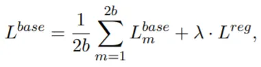 L^base๋ ๋ ๋ฌธ์ฅ s_i, s_j์ ์ ์ฌ์ฑ์ 4๊ฐ์ง ์์๋ค์ ๊ณ ๋ คํ์ฌ ์ ์ํ๋ค.