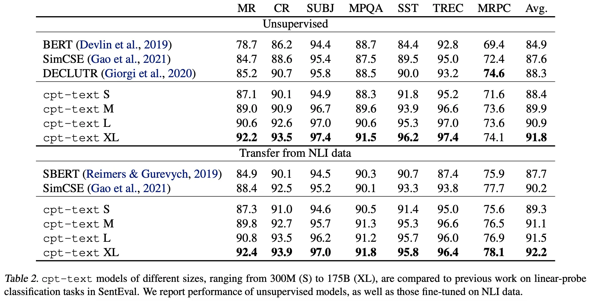(아래 그림) 반면, SentEval에서는 CPT가 SimCSE와 다른 모델들을 능가한다