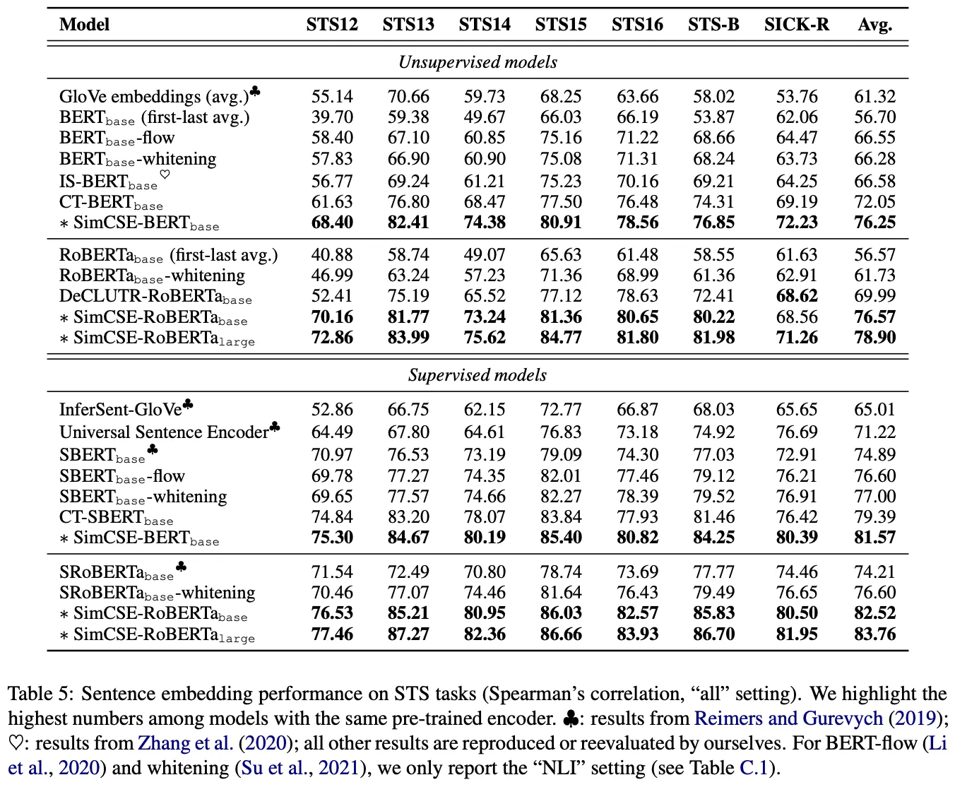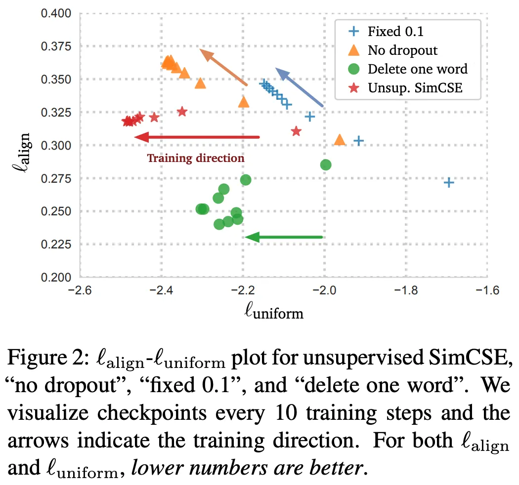 (위 그림-상) SimCSE는 STS에서 기존의 모델들에 비해 훨씬 개선된 성능을 보인다